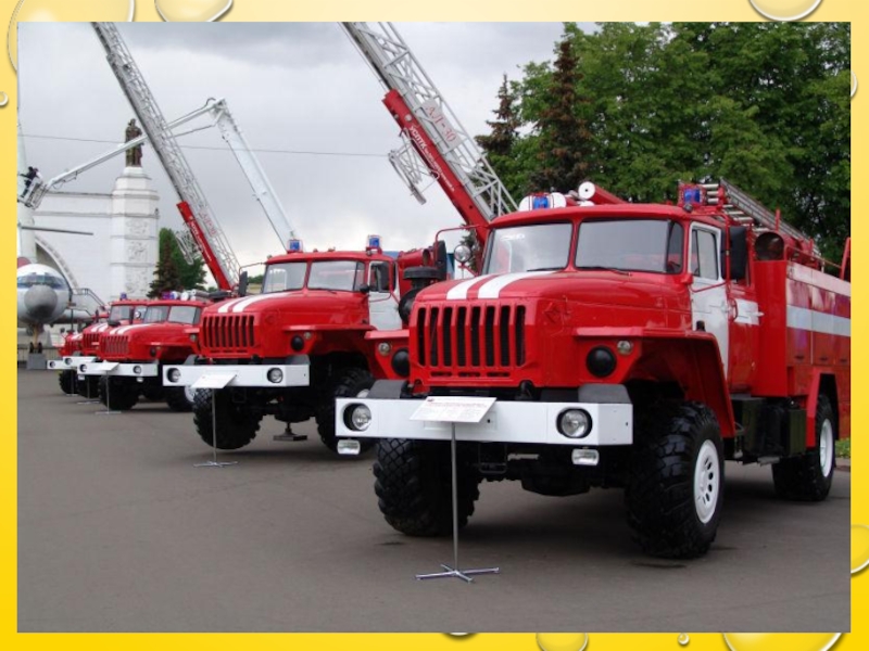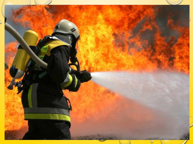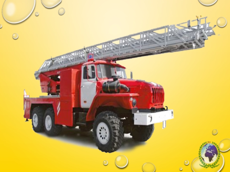 Слайд 12В пожарной машине всегда находится огнетушитель, в котором находится особая пена.
