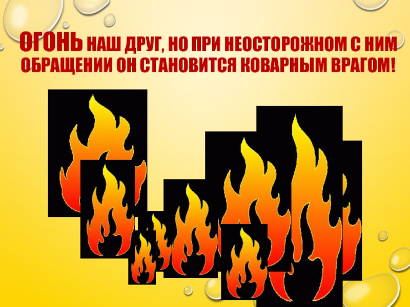 Слайд 2Огонь наш друг, но при неосторожном с ним