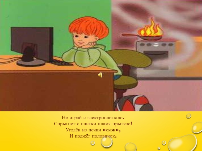 Спрыгнет с плитки пламя прыткое!