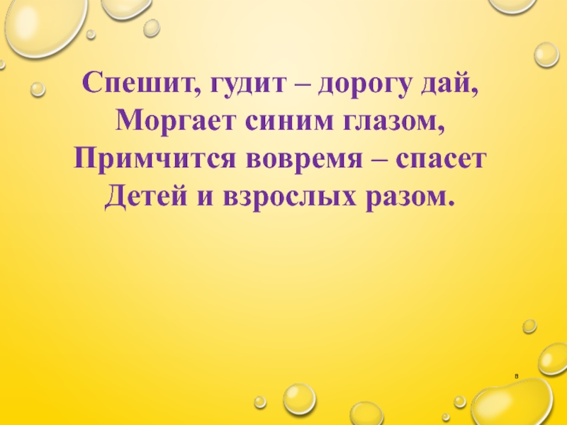 Слайд 8Спешит, гудит – дорогу дай,