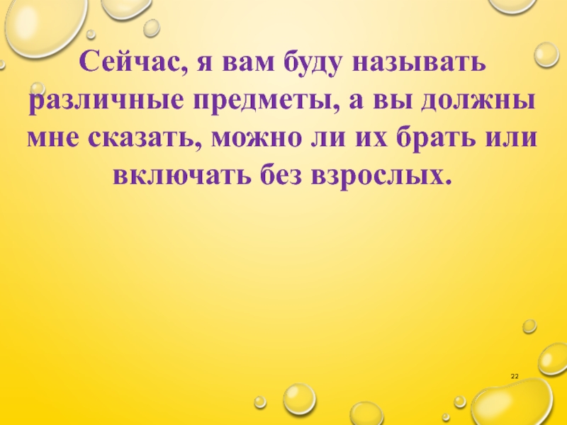 Слайд 22Сейчас, я вам буду называть различные предметы, а вы должны мне