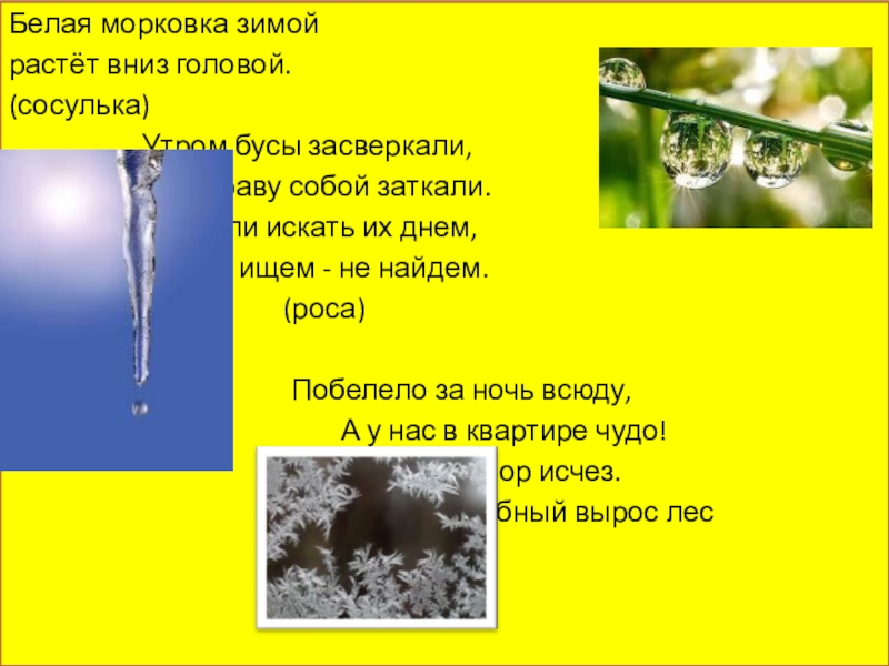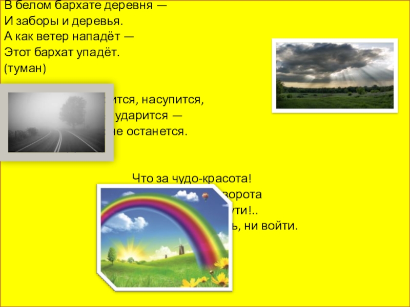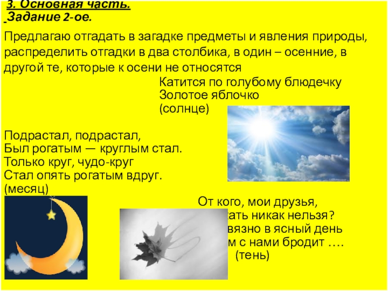 и явления природы, распределить отгадки в два столбика, в один – осенние, в другой те, которые к осени не относятся