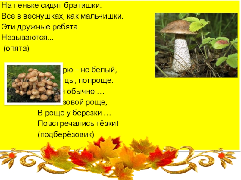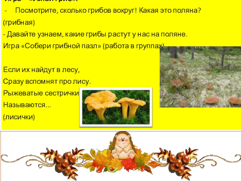 - Давайте узнаем, какие грибы растут у нас на поляне.