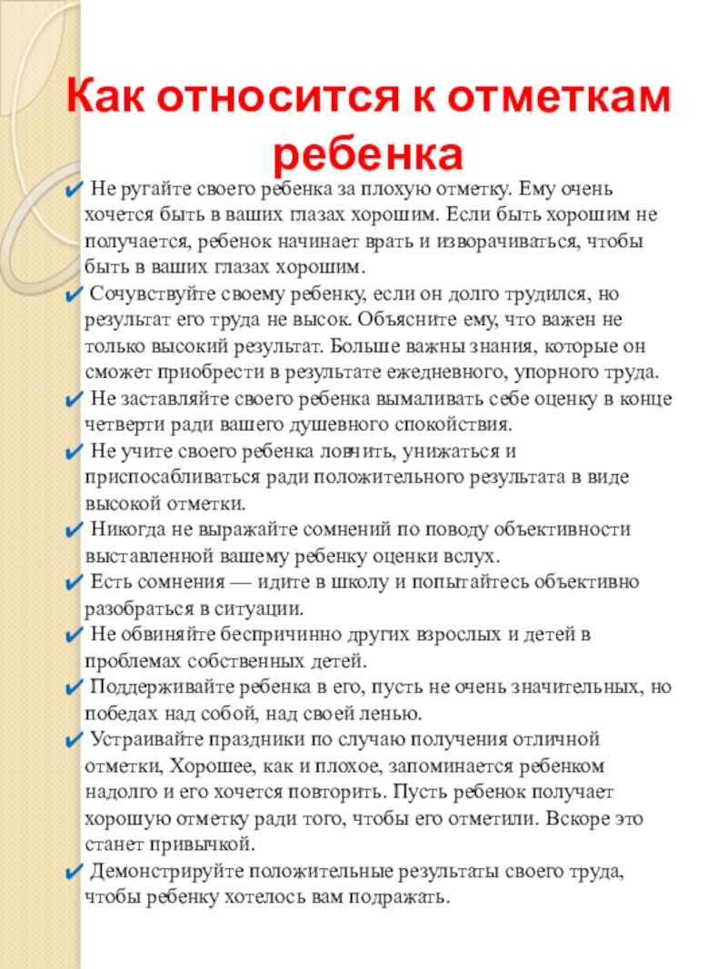 Слайд 6Как относится к отметкам ребенка