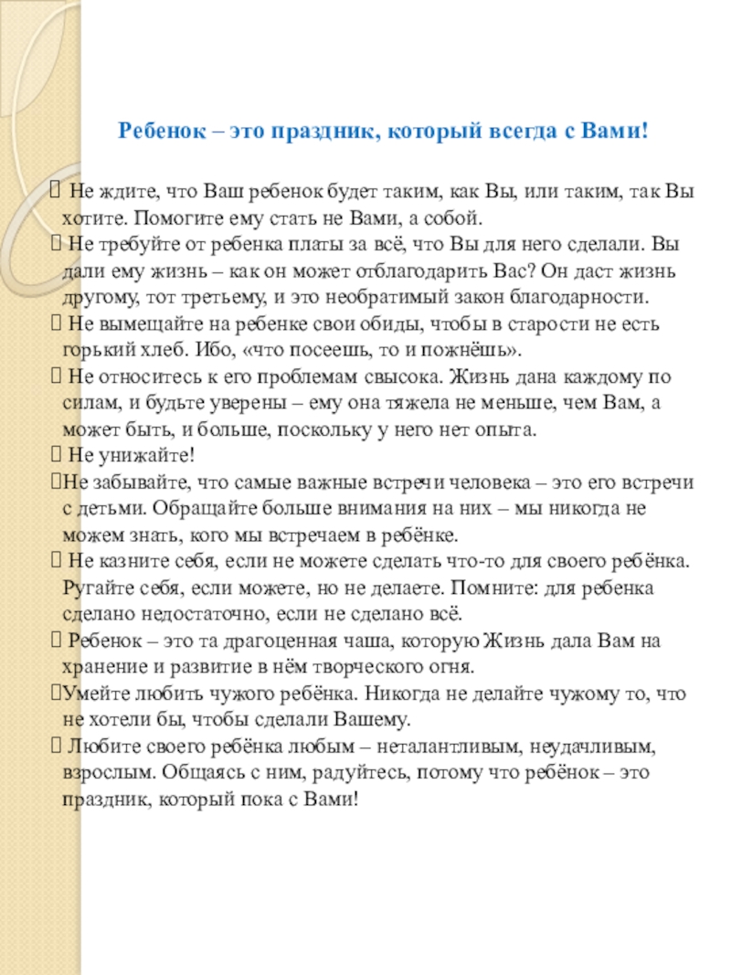 Слайд 8Ребенок – это праздник, который всегда с Вами!