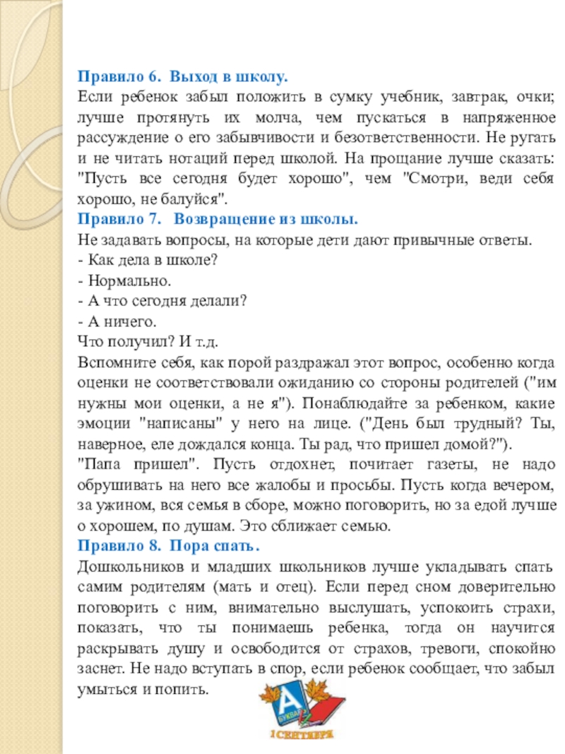 Правило 7. Возвращение из школы.