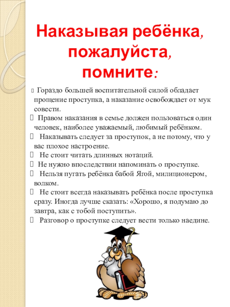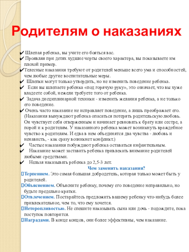 Слайд 11Родителям о наказаниях