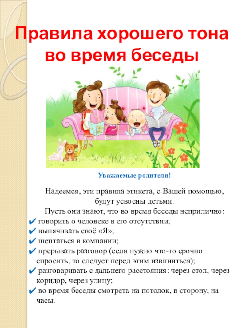 Пусть они знают, что во время беседы неприлично: