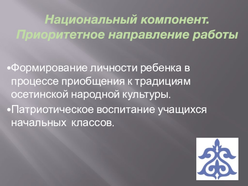 Слайд 3Национальный компонент. Приоритетное направление работы