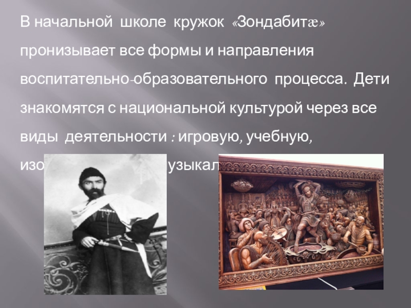 Слайд 11В начальной школе кружок «Зондабитӕ» пронизывает все формы и направления воспитательно-образовательного
