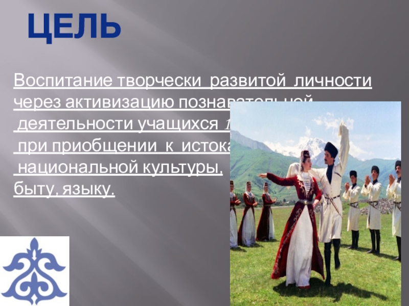 Слайд 2«ПРИОБЩЕНИЕ ДЕТЕЙ К ИСТОКАМ НАЦИОНАЛЬНОЙ КУЛЬТУРЫ, БЫТУ, ЯЗЫКУ ОСЕТИНСКОГО НАРОДА»