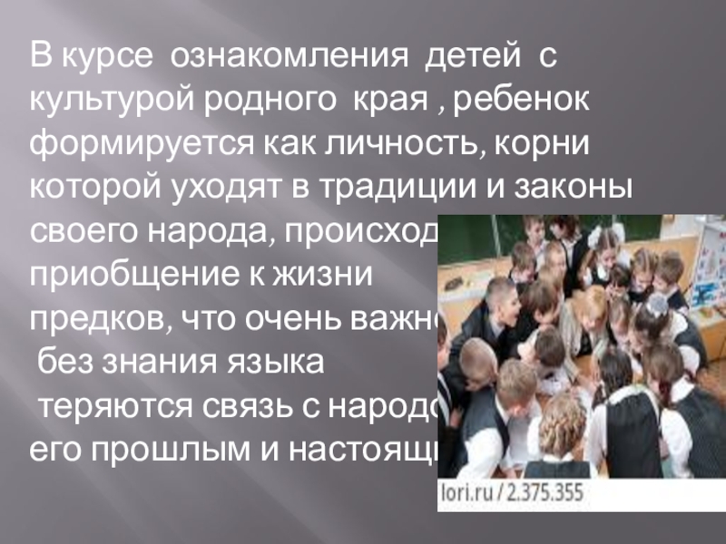 Слайд 9В курсе ознакомления детей с культурой родного края , ребенок формируется