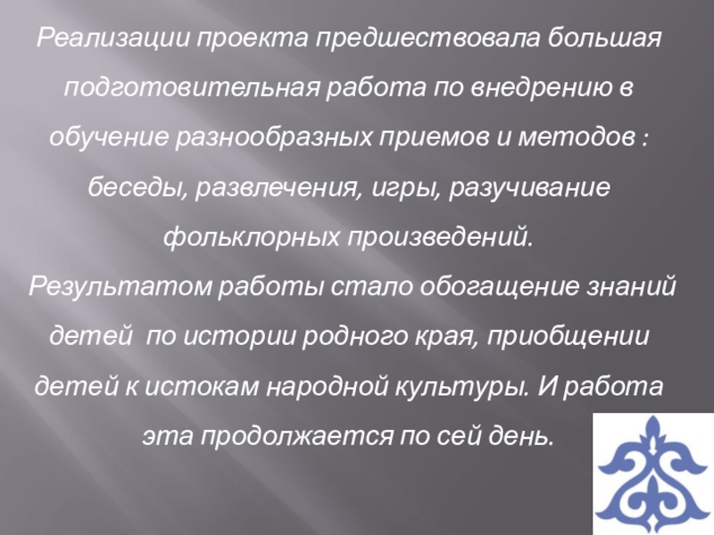 Слайд 20Реализации проекта предшествовала большая подготовительная работа по внедрению в обучение разнообразных