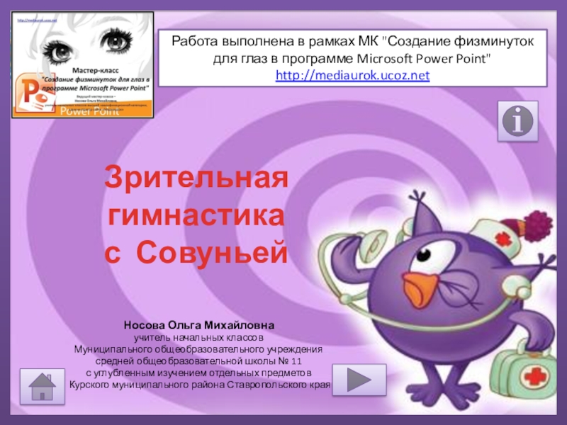 Работа выполнена в рамках МК "Создание физминуток для глаз в программе Microsoft Power Point"
