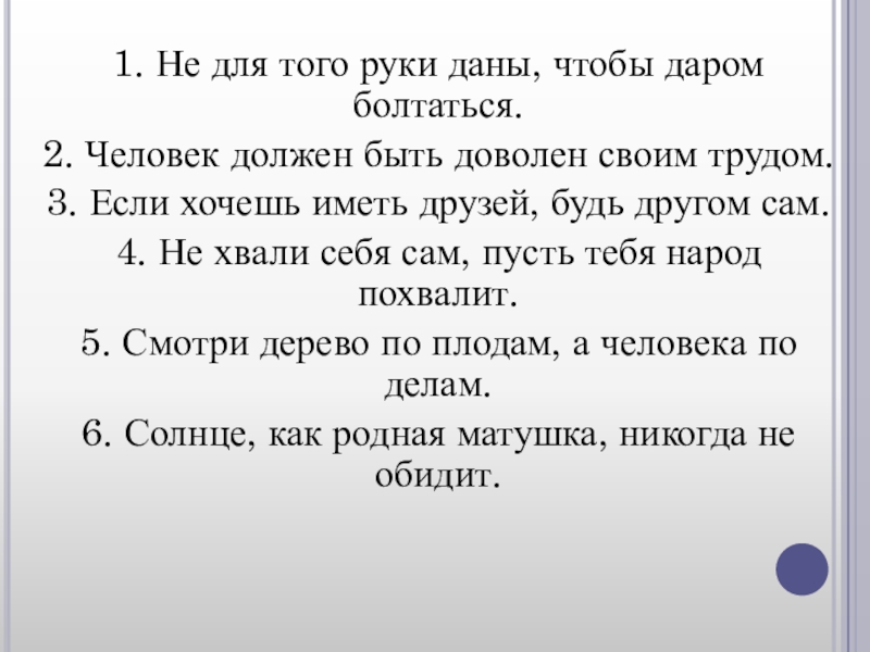 Слайд 51. Не для того руки даны, чтобы даром болтаться.
