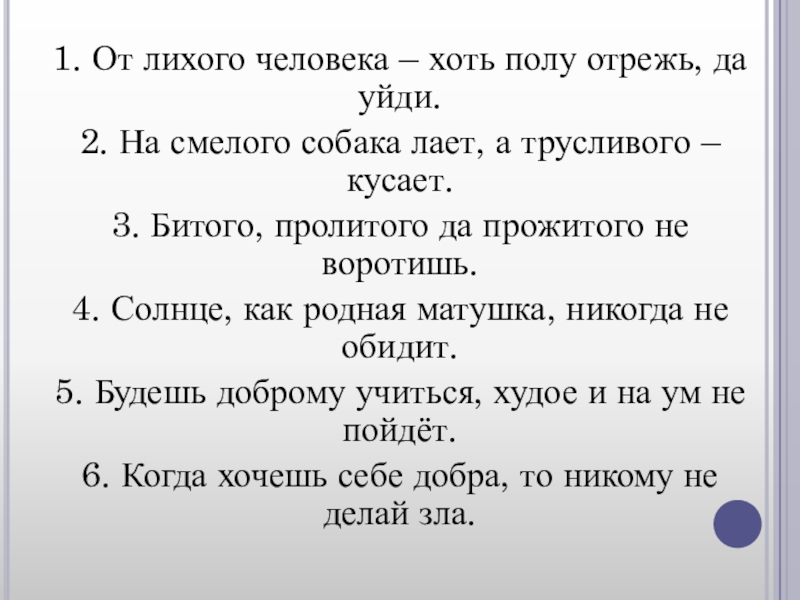 Слайд 71. От лихого человека – хоть полу отрежь, да уйди.