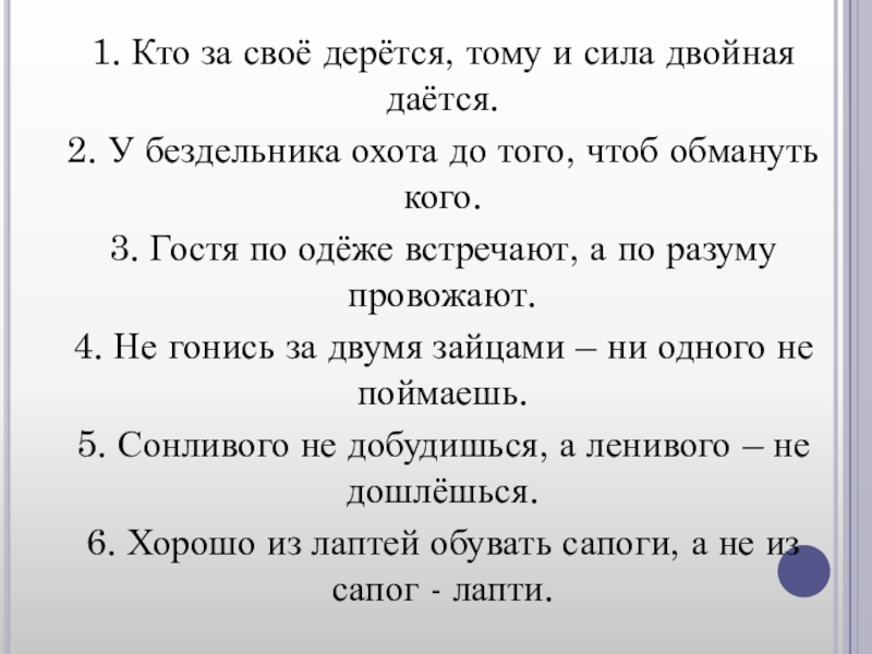 6. Хорошо из лаптей обувать сапоги, а не из сапог - лапти.