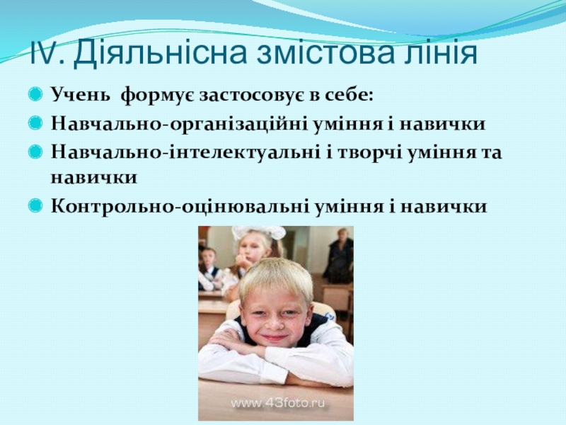Слайд 19IV. Діяльнісна змістова лінія