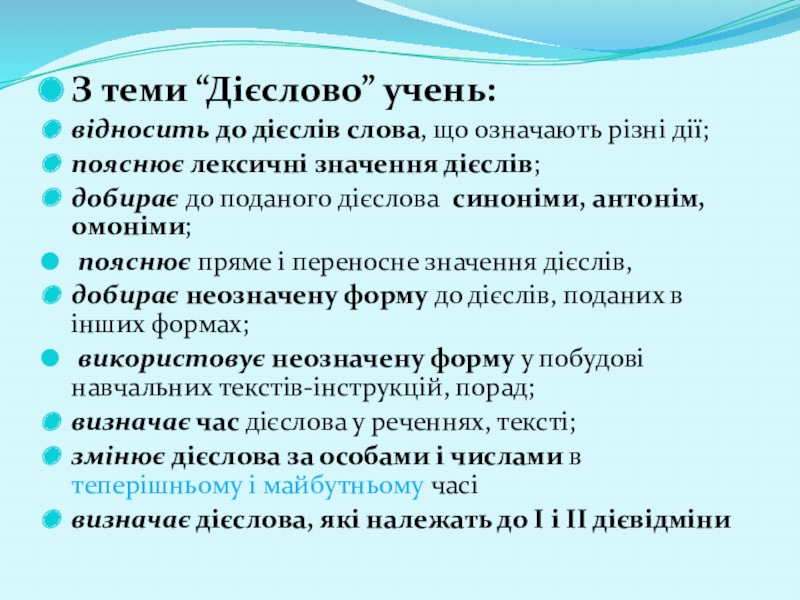 Слайд 15З теми “Дієслово” учень: