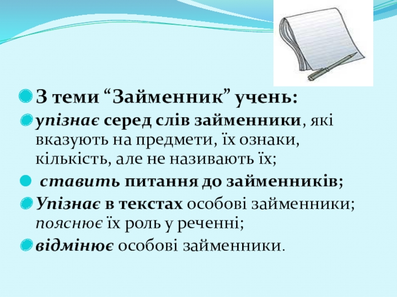 Слайд 14З теми “Займенник” учень: