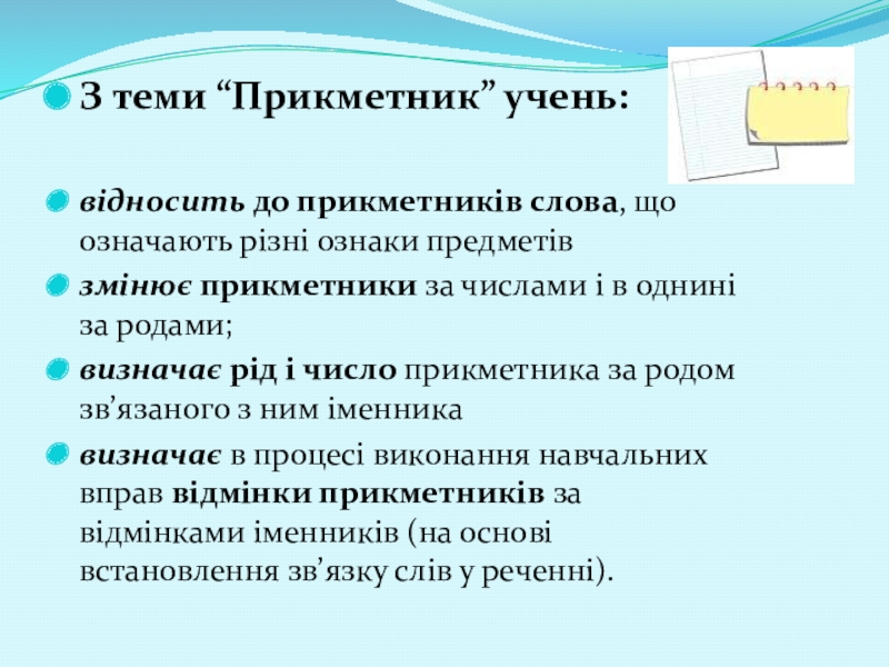 Слайд 13З теми “Прикметник” учень: