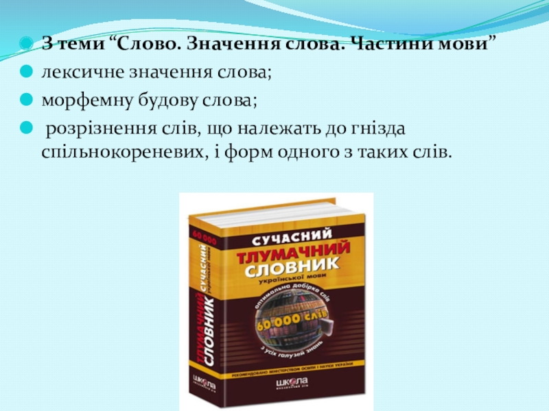 Слайд 10З теми “Слово. Значення слова. Частини мови”