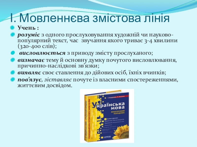 Слайд 5І. Мовленнєва змістова лінія