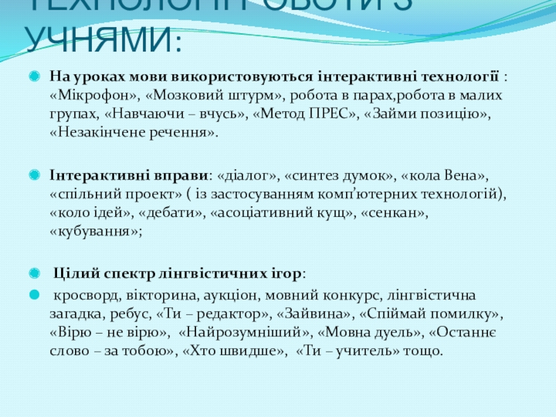 Слайд 4ТЕХНОЛОГІЇ РОБОТИ З УЧНЯМИ: