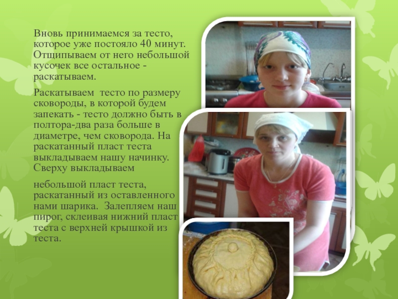 Слайд 8Вновь принимаемся за тесто, которое уже постояло 40 минут. Отщипываем от