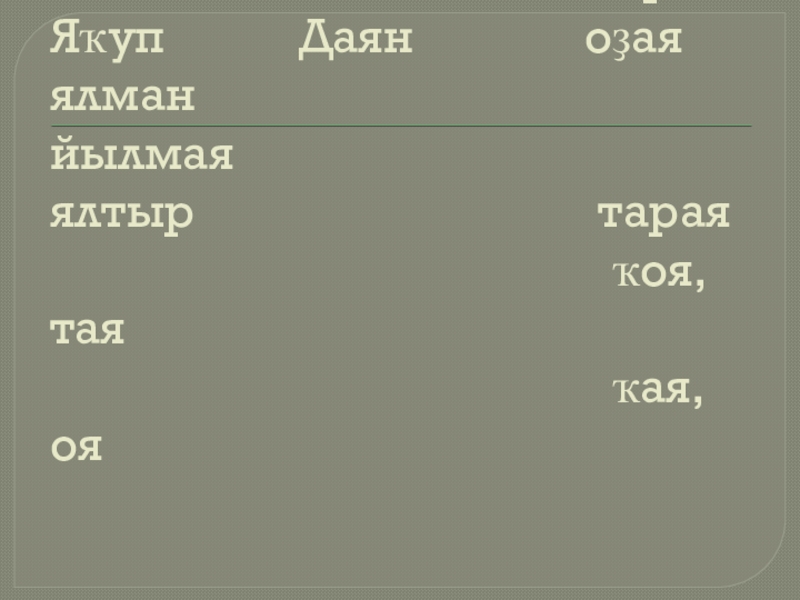 һарғая Яҡуп Даян оҙая ялман йылмая ялтыр тарая ҡоя,тая ҡая, оя