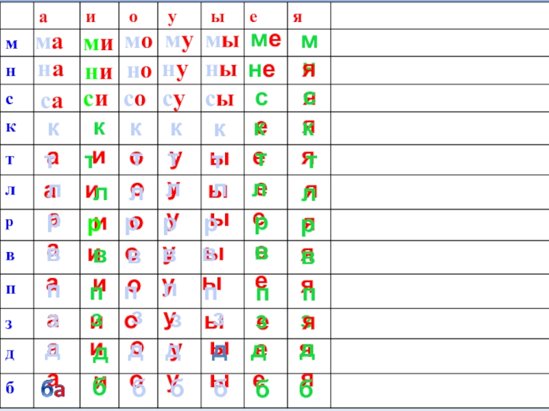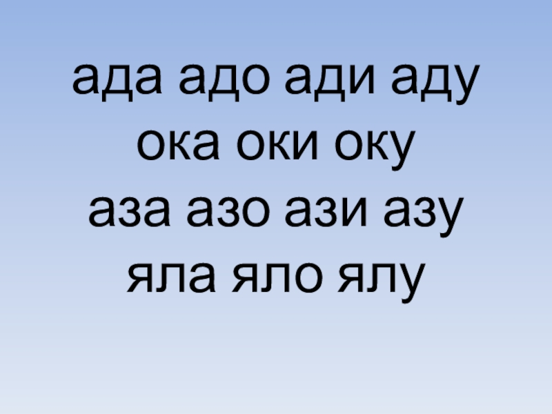 Слайд 12ада адо ади аду ока оки оку аза азо ази азу яла яло
