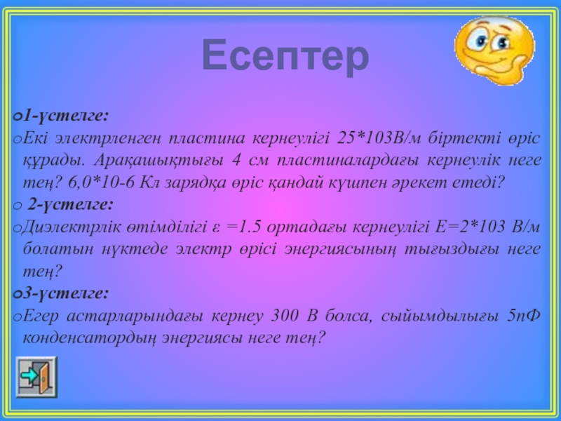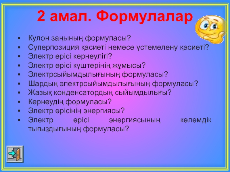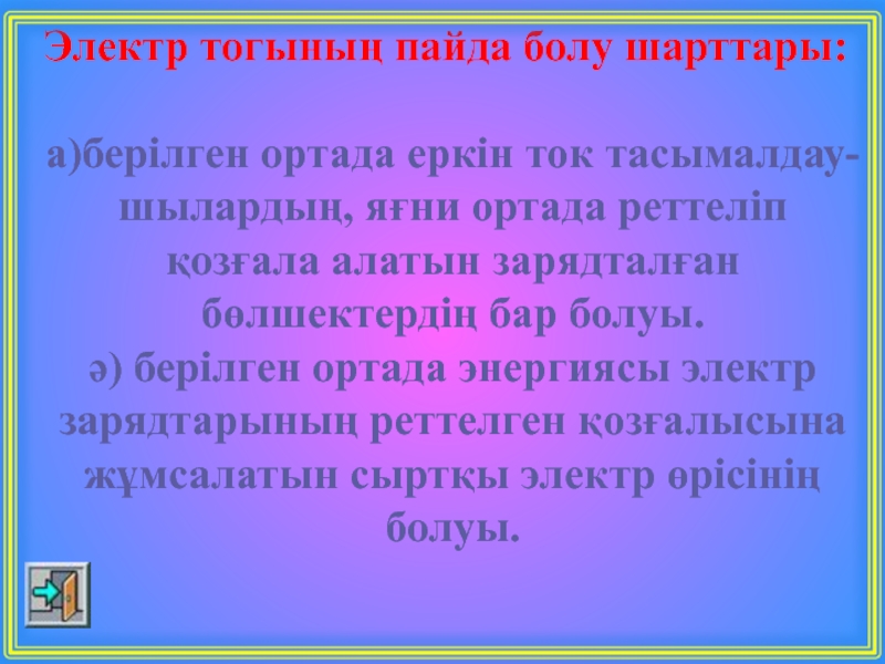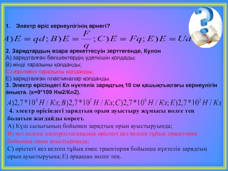 4. электр өрісіндегі зарядтың орын ауыстыру жұмысы нолге тең болатын жағдайды көрсет.
