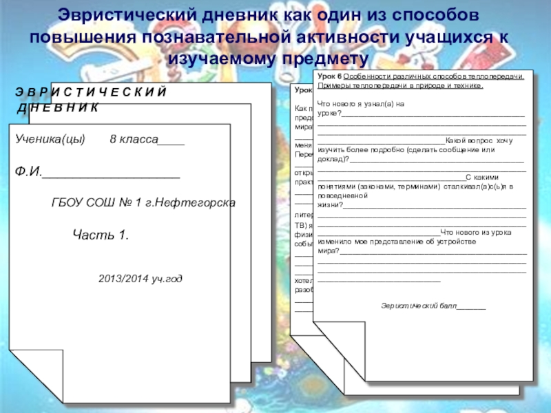 Тема:« Эвристический дневник