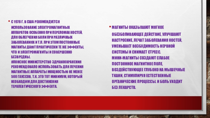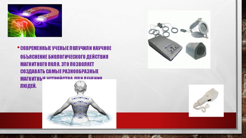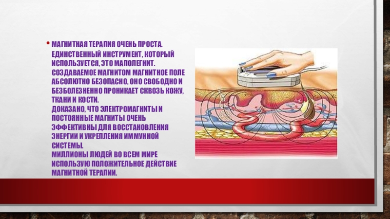 Мини-магниты создают слабое постоянное магнитное поле, воздействующее глубоко на мышечные ткани, стимулируя естественные органические процессы. И боль уходит без лекарств.