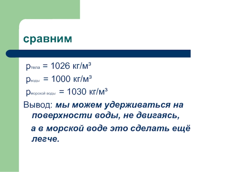 Ответить на вопрос: «Почему люди могут свободно держаться на воде.»