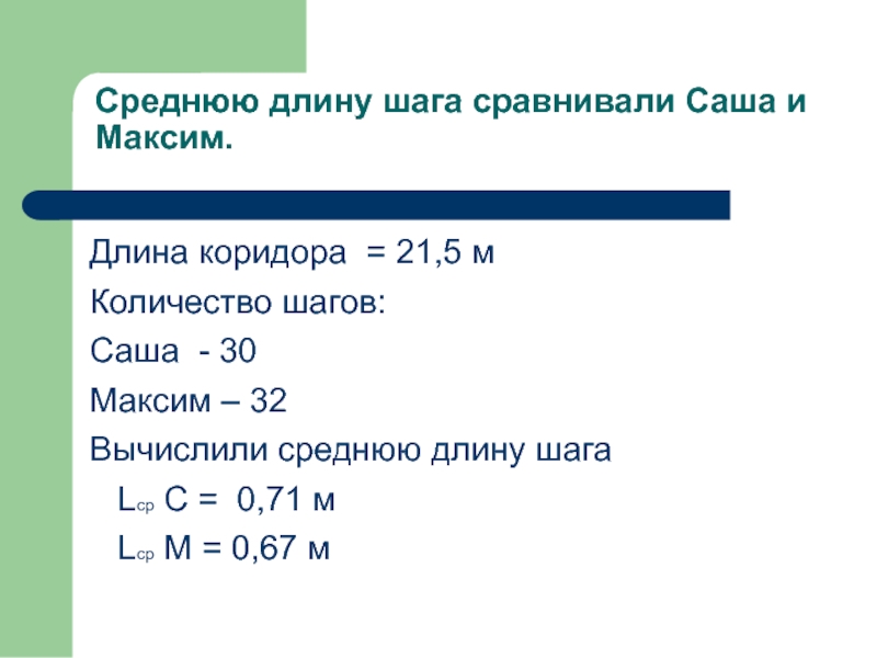 Среднюю длину шага сравнивали Саша и Максим.