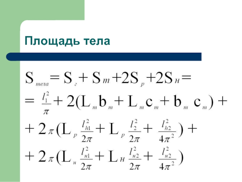 также определили площадь поверхности тела по