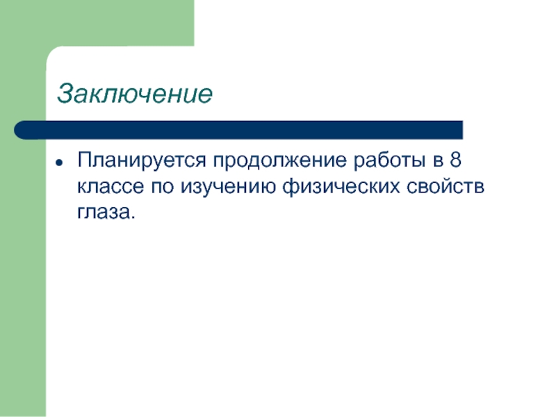 Планируется продолжение работы в 8 классе по изучению физических свойств