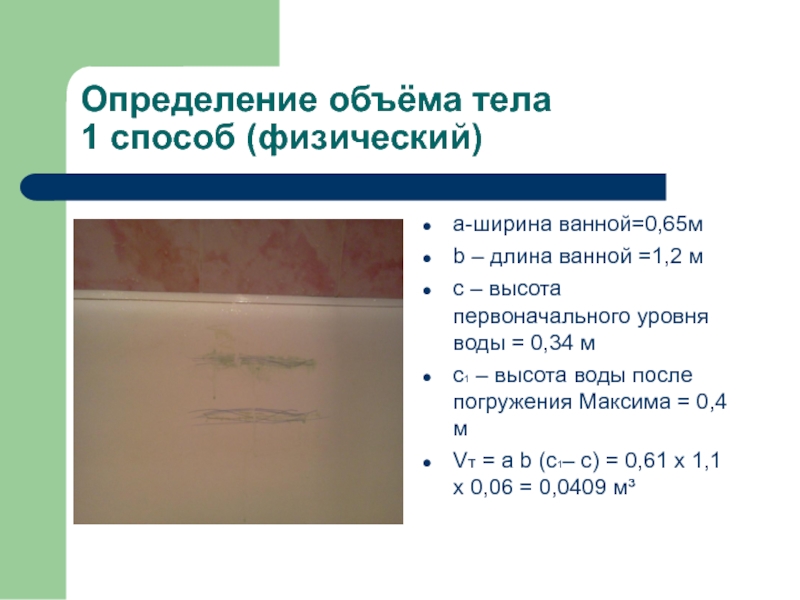 - определение объёма и плотности своего тела;