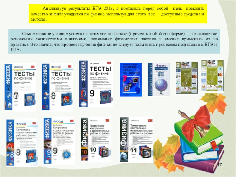 Самое главное условие успеха на экзамене по физике (причем в любой его форме) – это овладение основными физическими понятиями, понимание физических законов и умение применять их на практике. Это значит, что процесс изучения физики не следует подменять процессом подготовки к ЕГЭ и ГИА.