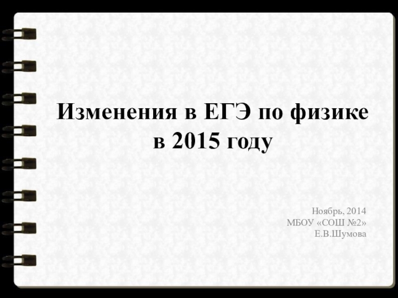 Слайд 1Изменения в ЕГЭ по физике в 2015 году