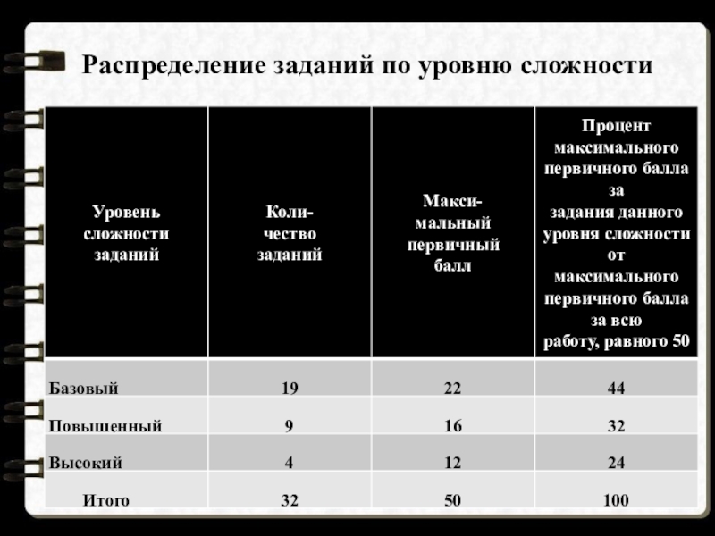 Слайд 11Распределение заданий КИМ по уровню сложности