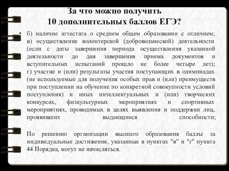 По решению организации высшего образования баллы за индивидуальные достижения, указанные в пунктах "в" и "г" пункта 44 Порядка, могут не начисляться.