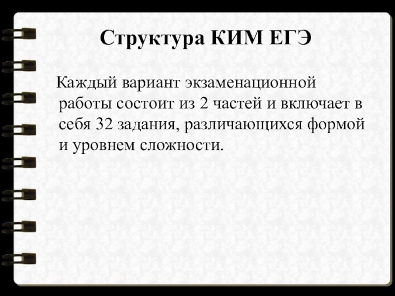 Слайд 2Изменена структура варианта КИМ: каждый вариант состоит из двух частей (все
