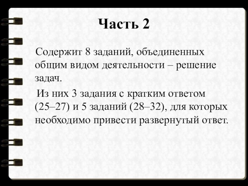 Из них 3 задания с кратким ответом (25–27) и 5 заданий (28–32), для которых необходимо привести развернутый ответ.