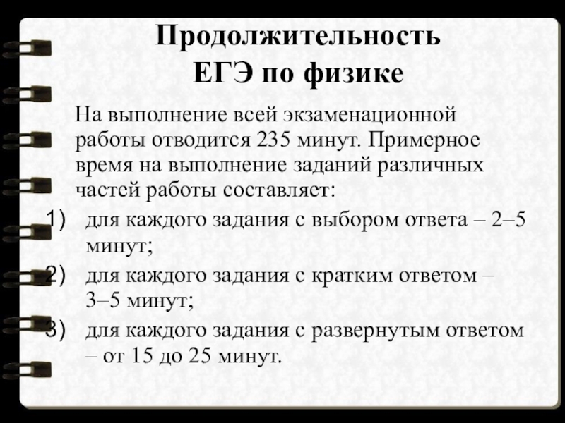 отводится 235 минут. Примерное время на выполнение заданий различных частей работы составляет:
