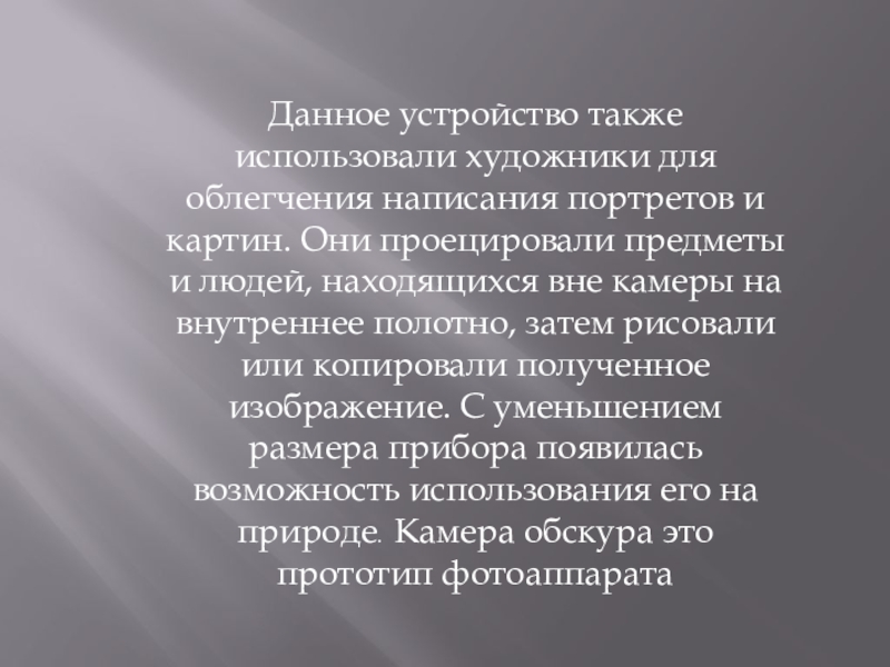 Слайд 4Данное устройство также использовали художники для облегчения написания портретов и картин.