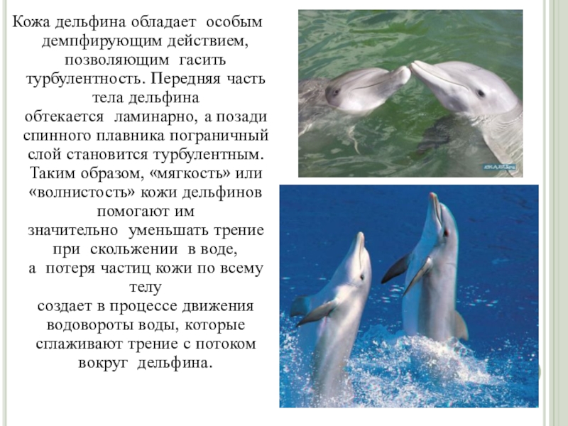 Таким образом, «мягкость» или «волнистость» кожи дельфинов помогают им