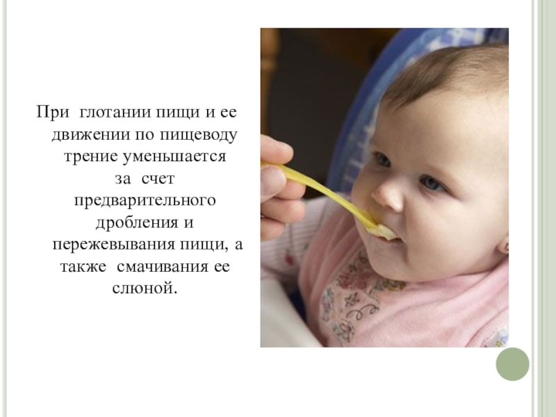 Слайд 16При глотании пищи и ее движении по пищеводу трение уменьшается за
