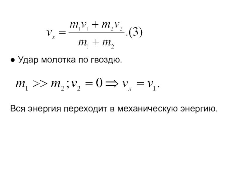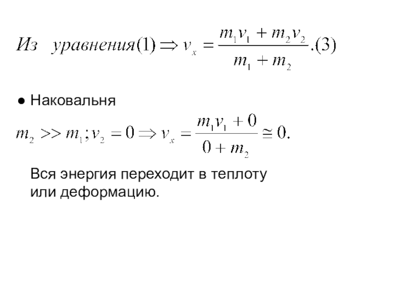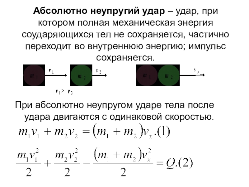 При абсолютно неупругом ударе тела после удара двигаются с одинаковой скоростью.